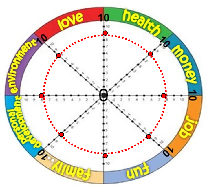 3. Connect the dots with a line and see what shape it has. Ideally, this shape should be a big and regular circle. It would mean that your life wheel turns smooth and you are satisfied with your life in every direction.