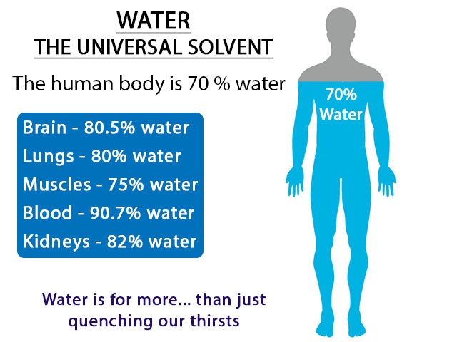 70% of the human body is made up of water. It helps keep all processes running smoothly. Your body uses water in all its cells, organs, and tissues to help regulate temperature and maintain other bodily functions. Because your body loses water through breathing, sweating, and digestion, it’s important to rehydrate by drinking fluids and eating foods that contain water. You should maintain 70% of water in your body constantly.